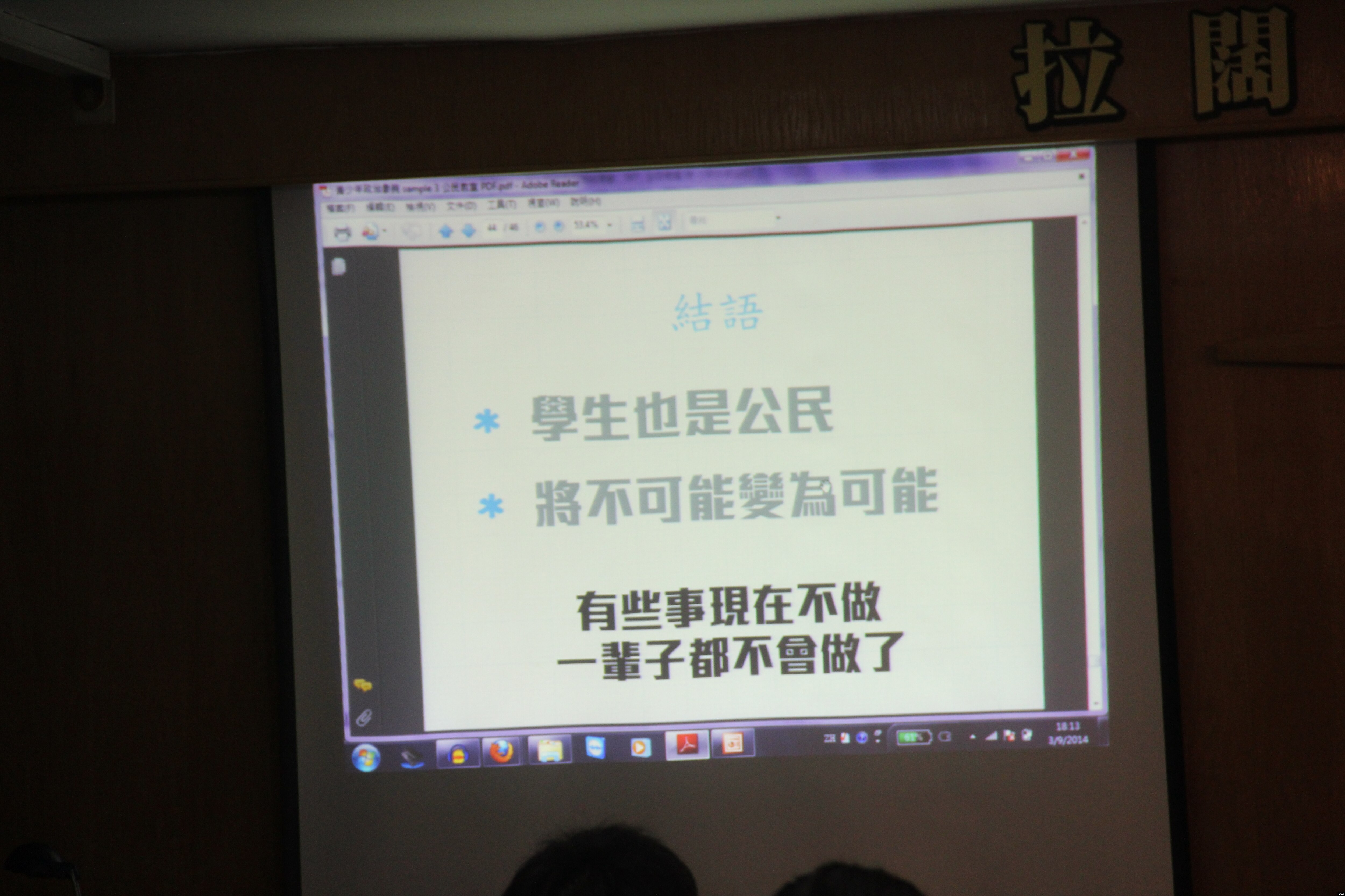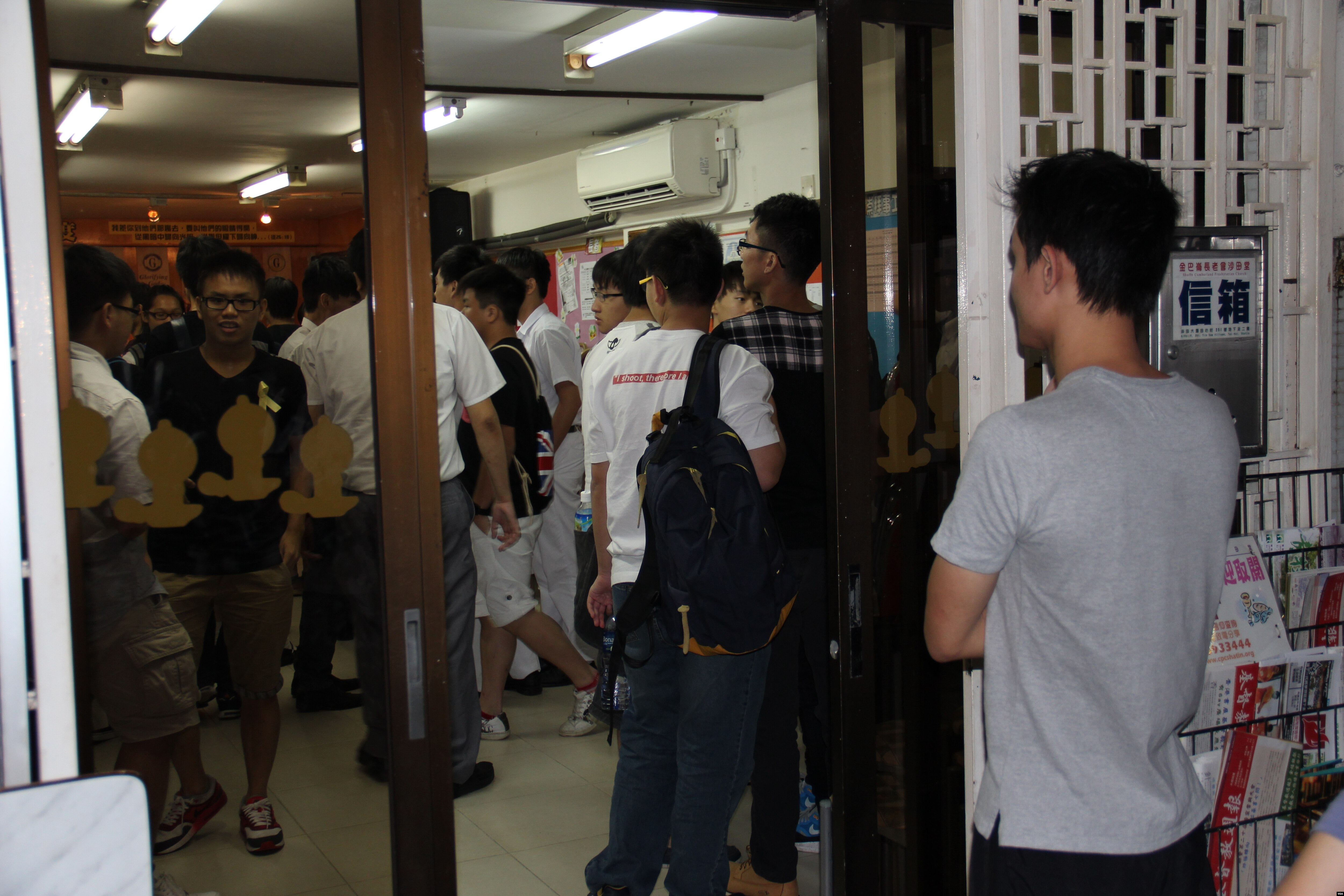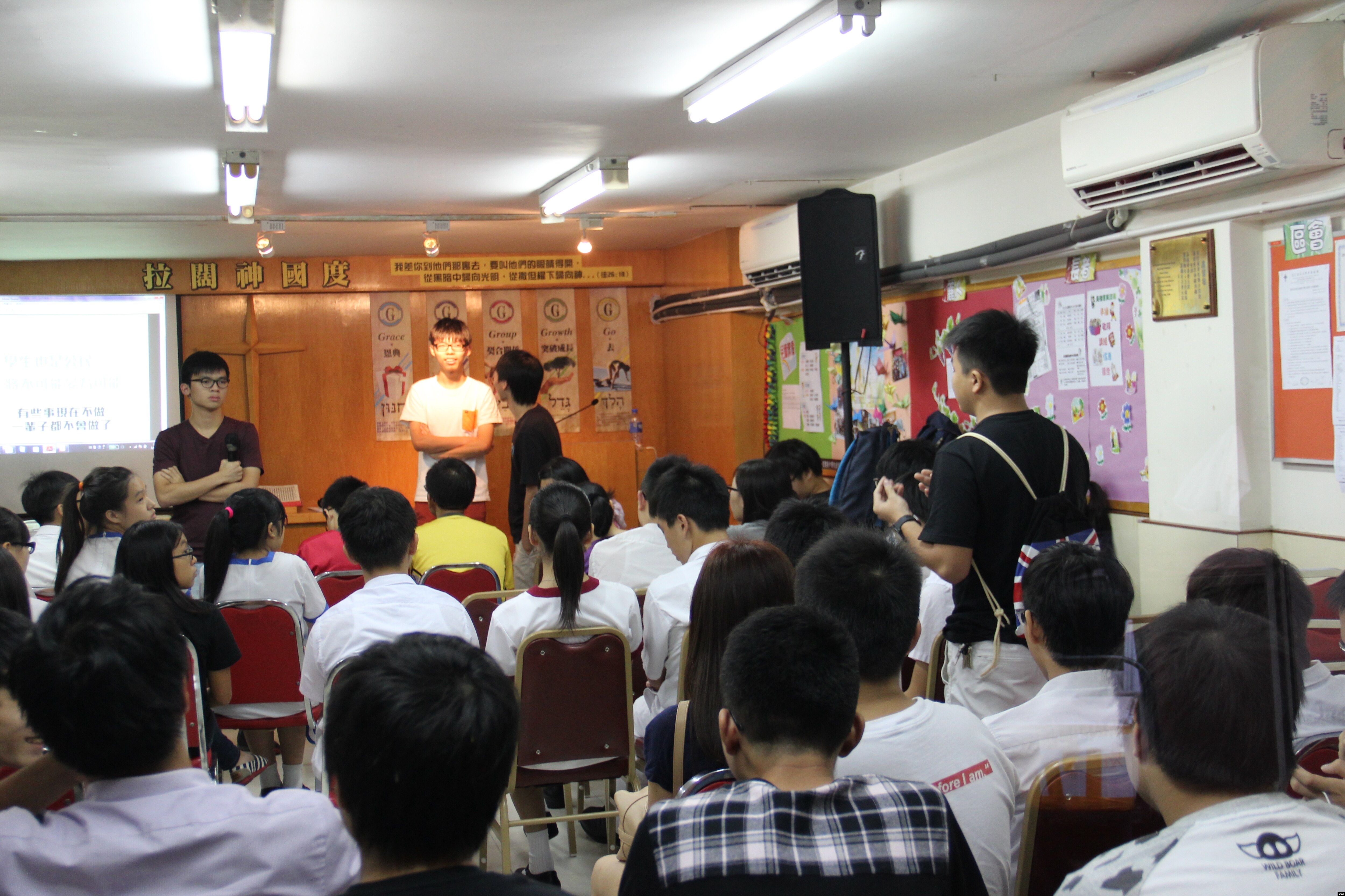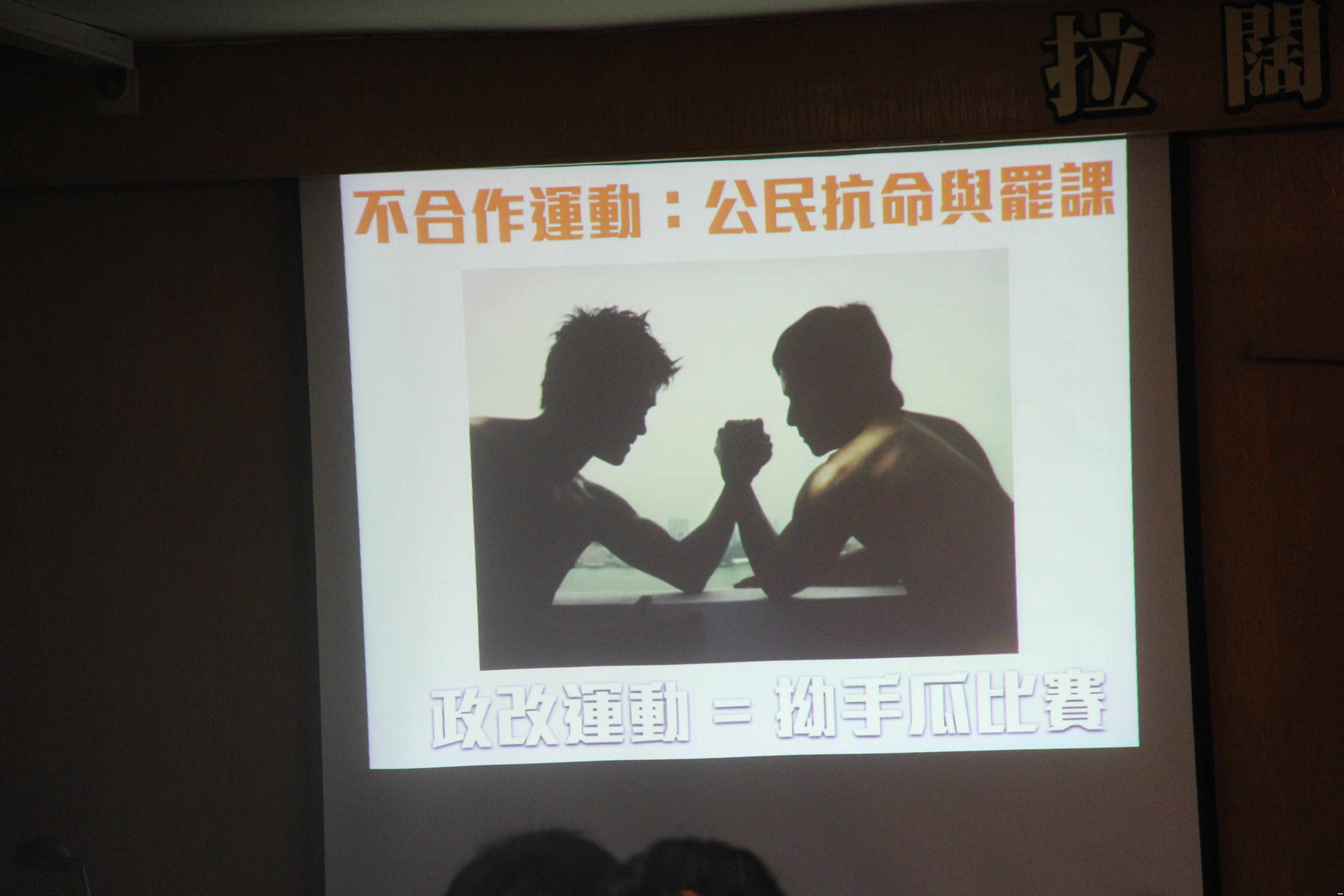 9月3日下午,学民思潮在九龙沙田的一所教堂举办三场“公民教室”的首场活动,由今年刚升入大学的数位学民骨干,包括召集人黄之锋、黎汶洛、刘贰龙等,向刚刚下学的40多位中学生讲解政改和公民抗命。